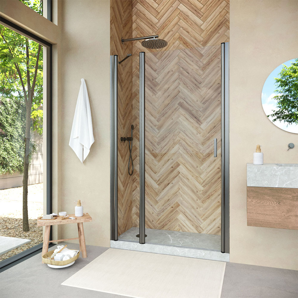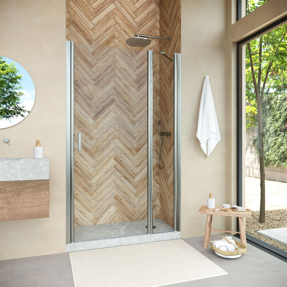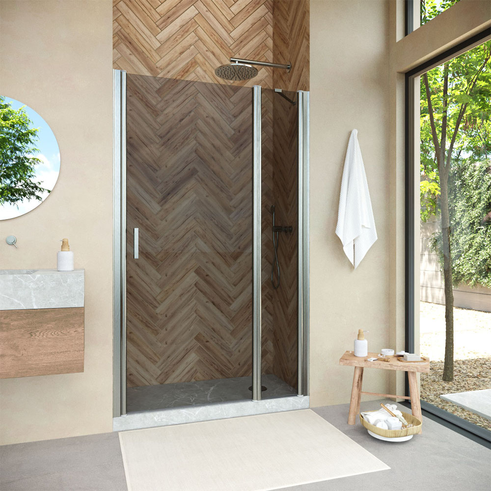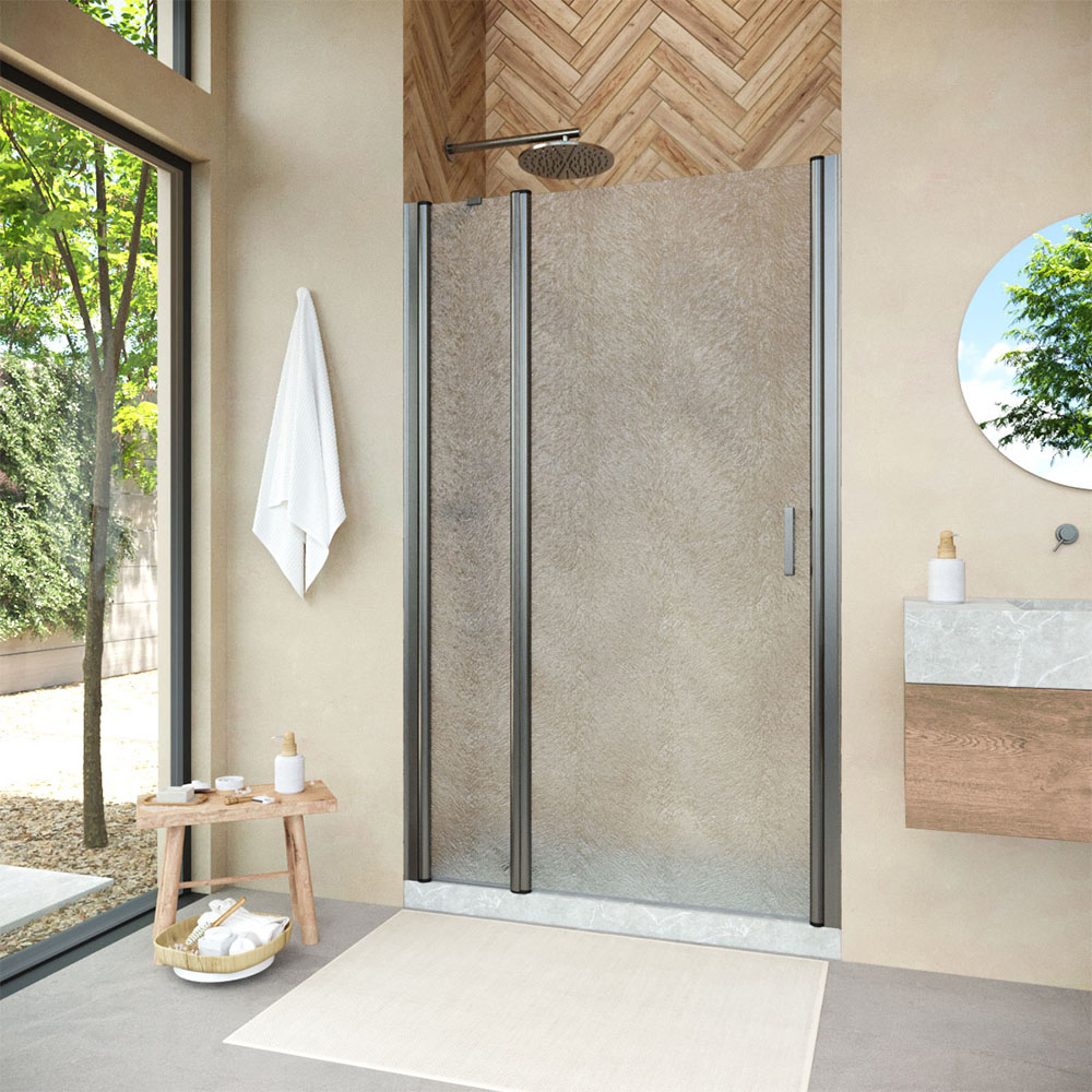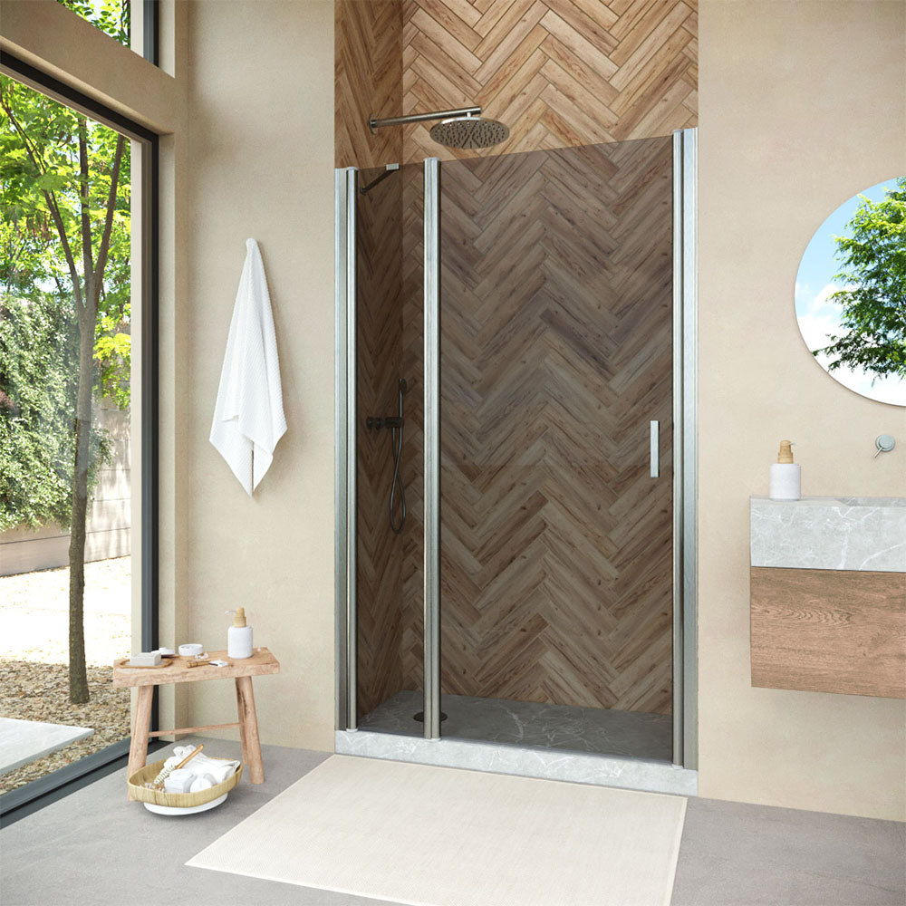 Конструкция двери Vegas-Glass EP-F-1 NOVO обеспечивает удобный доступ к душевому пространству и способствует оптимальному использованию площади ванной комнаты. Распашная система не только удобна в использовании, но и подчеркивает изящество общего дизайна.