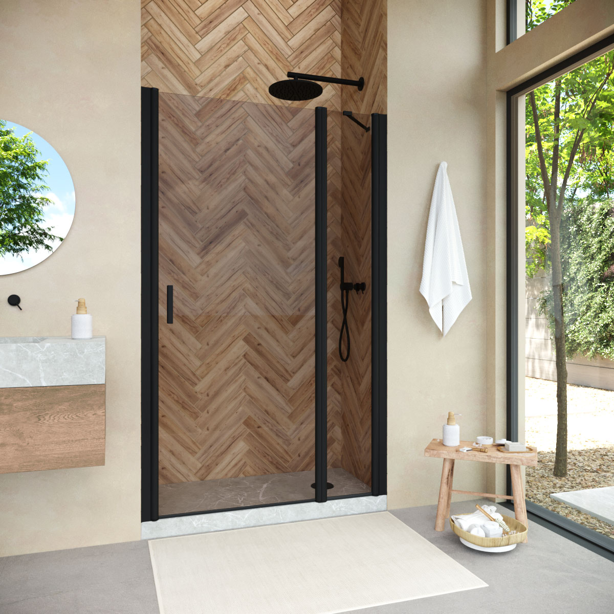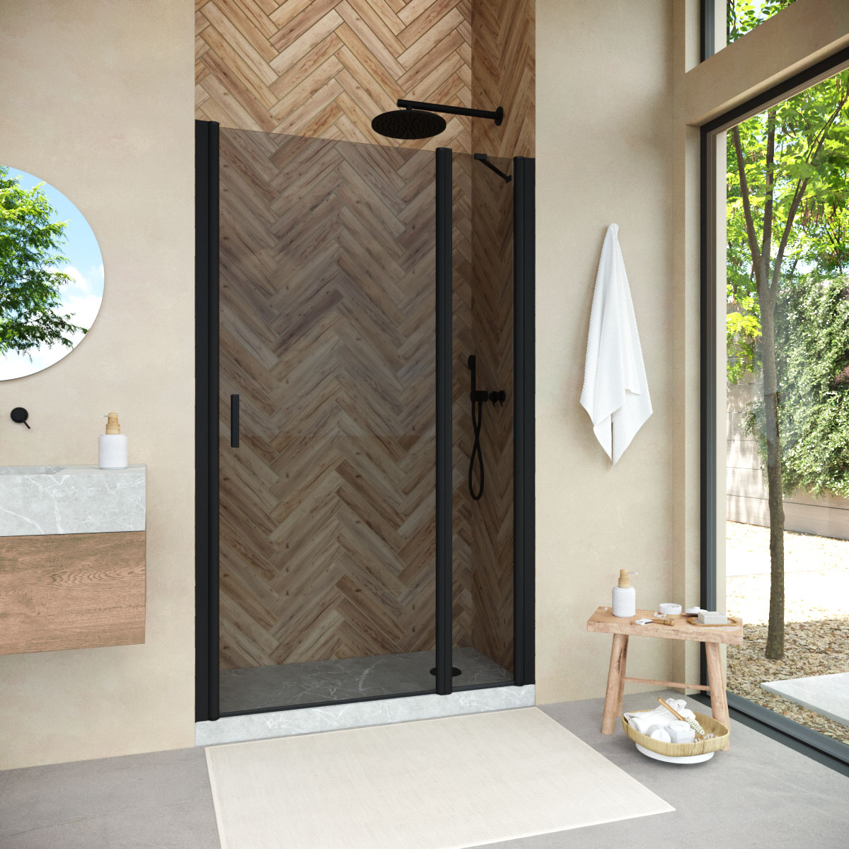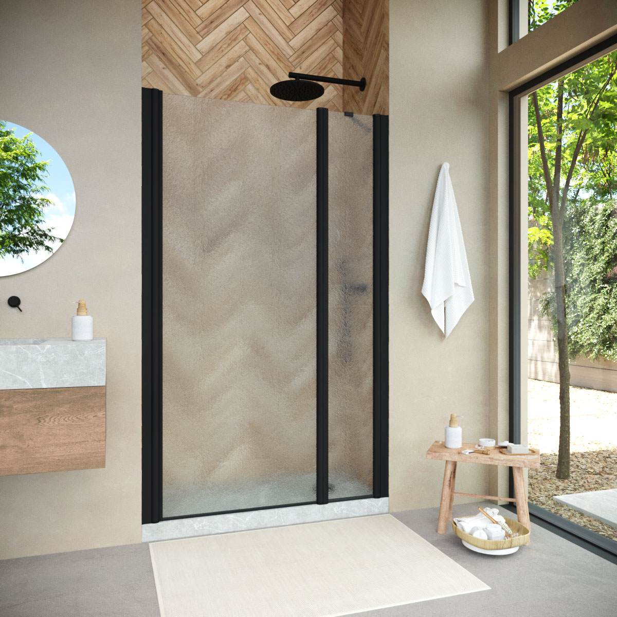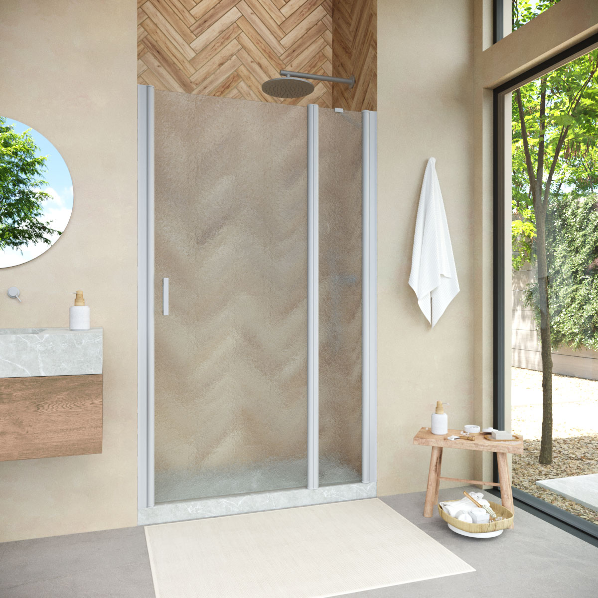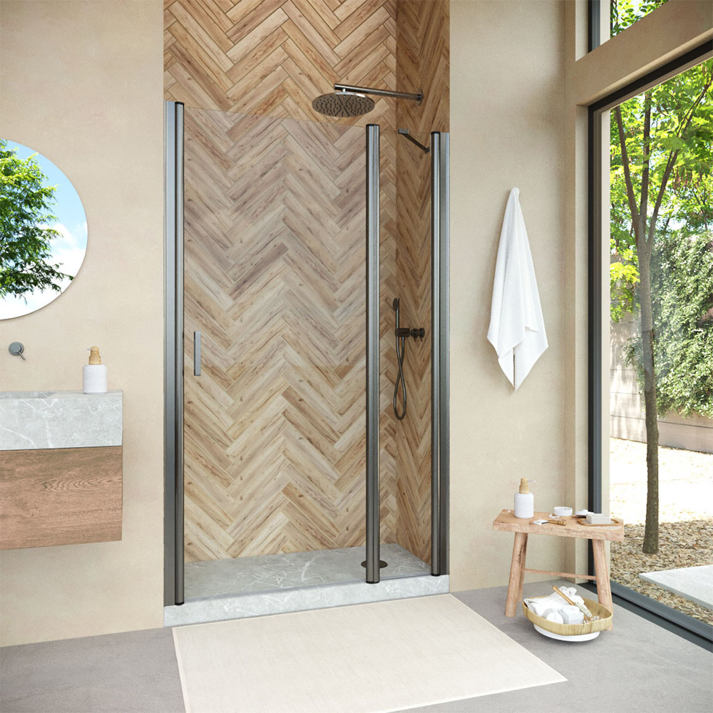 Конструкция двери Vegas-Glass EP-F-1 NOVO обеспечивает удобный доступ к душевому пространству и способствует оптимальному использованию площади ванной комнаты. Распашная система не только удобна в использовании, но и подчеркивает изящество общего дизайна.