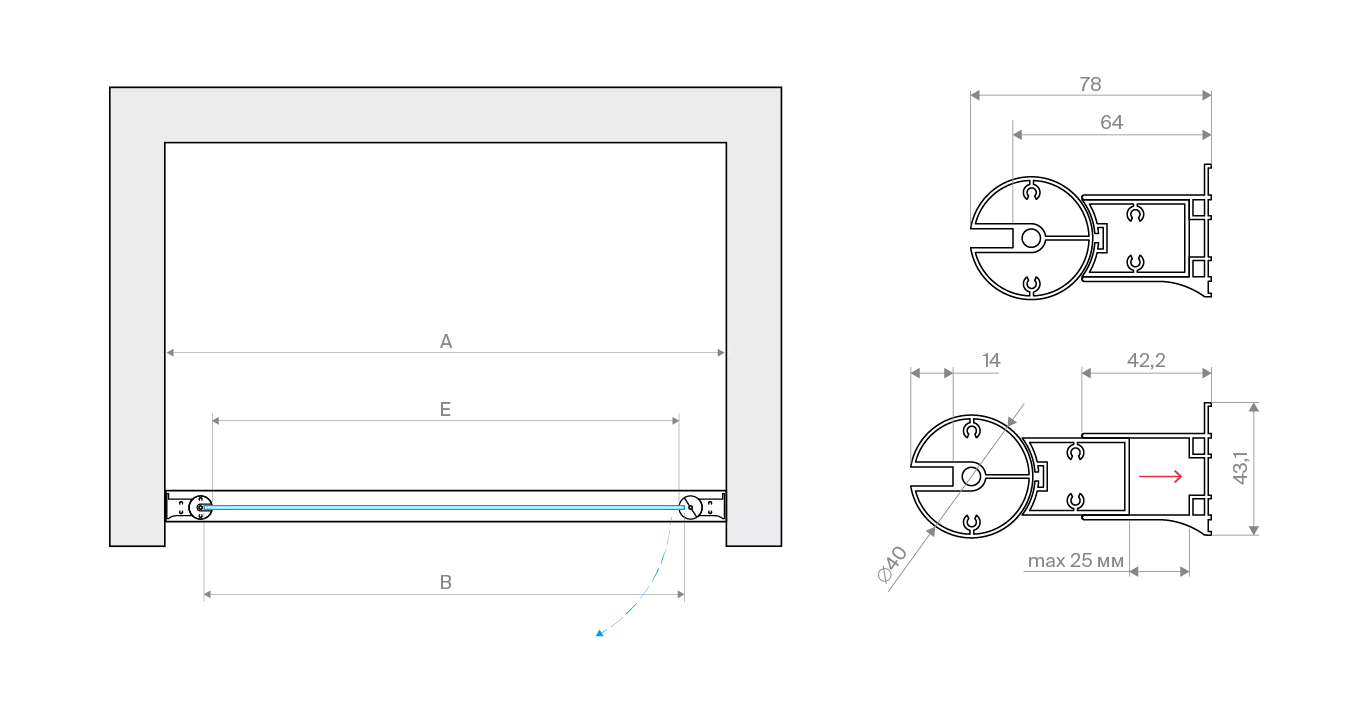 Привнесите современный стиль и функциональность в вашу ванную комнату с нашей душевой дверью для ниши, оснащённой монопетлей EP.
