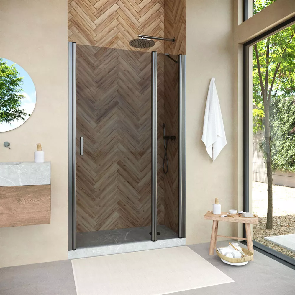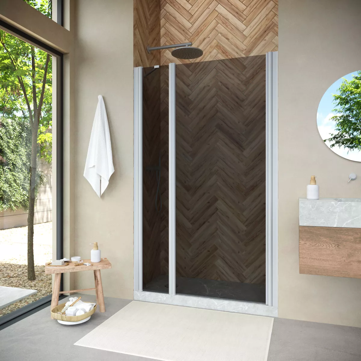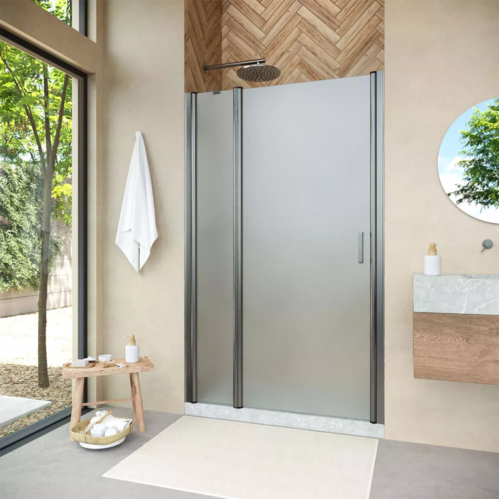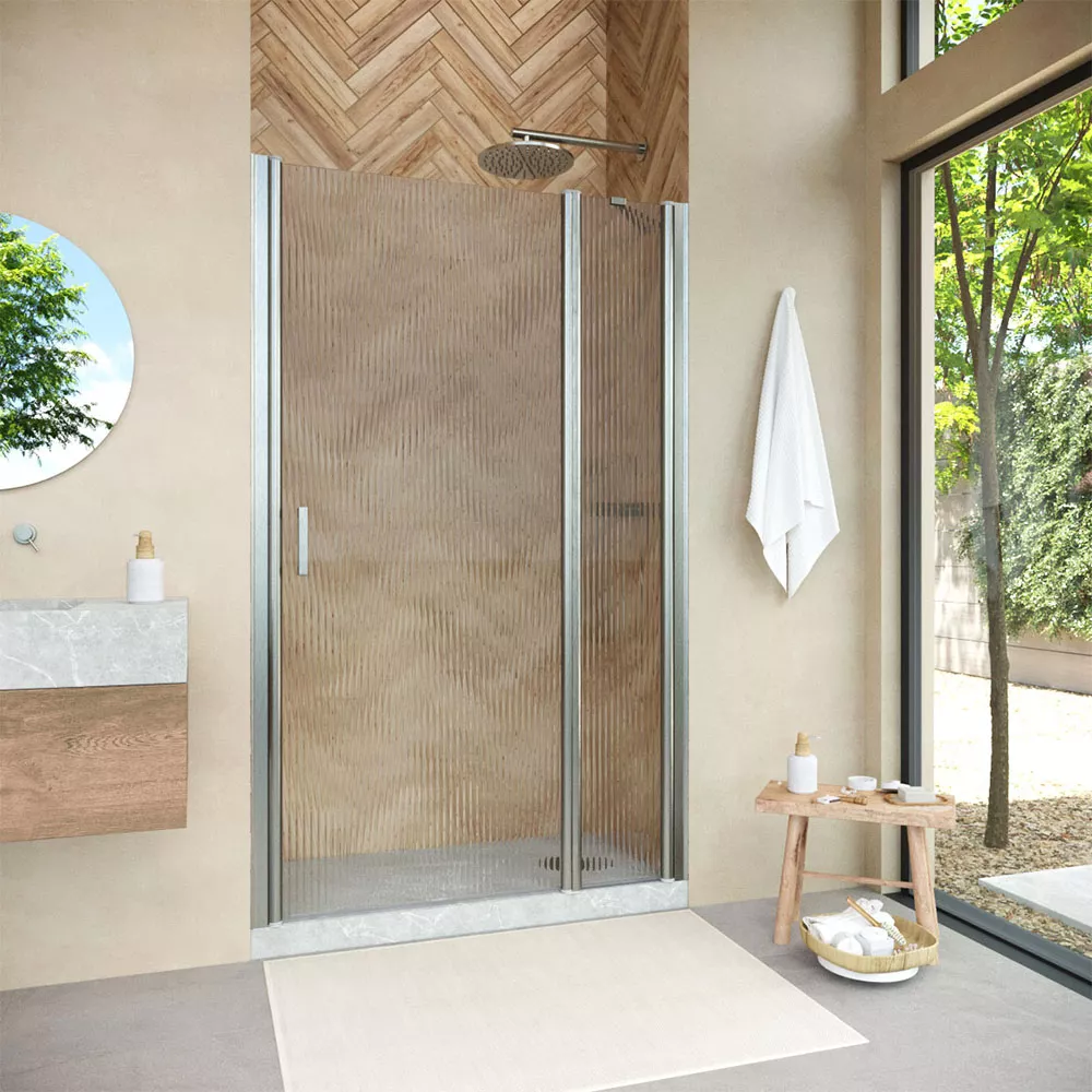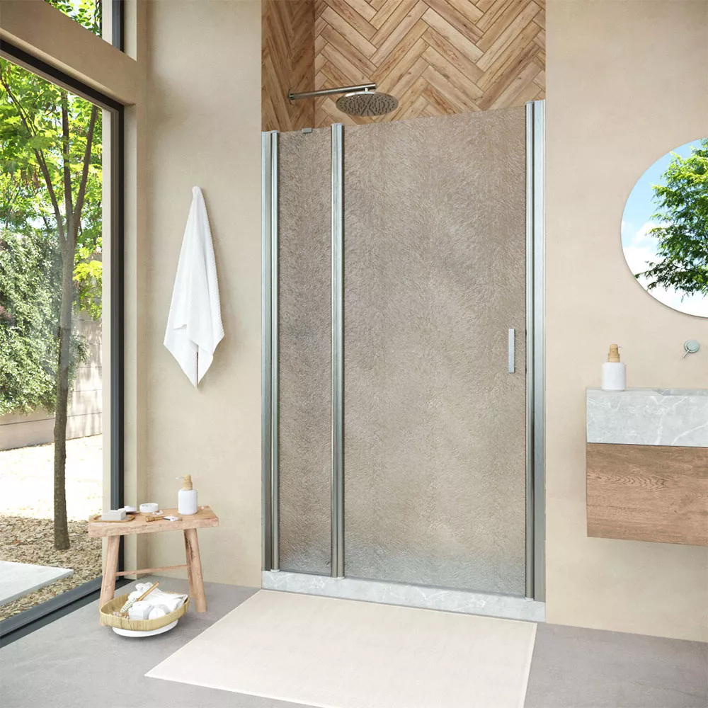 Конструкция двери Vegas-Glass EP-F-1 NOVO обеспечивает удобный доступ к душевому пространству и способствует оптимальному использованию площади ванной комнаты. Распашная система не только удобна в использовании, но и подчеркивает изящество общего дизайна.