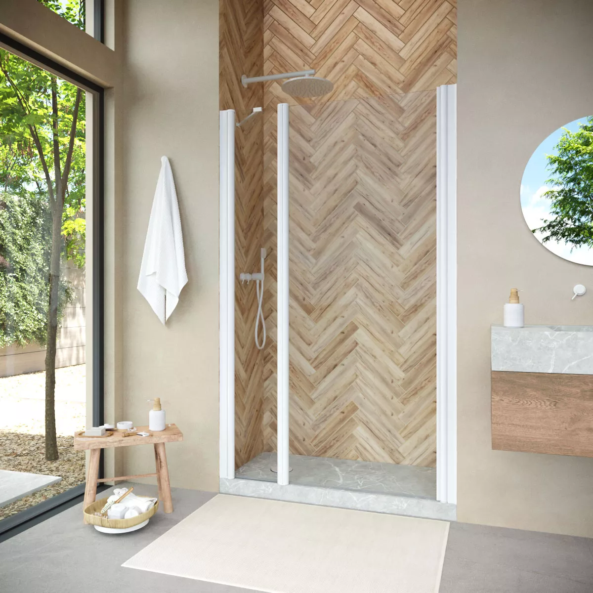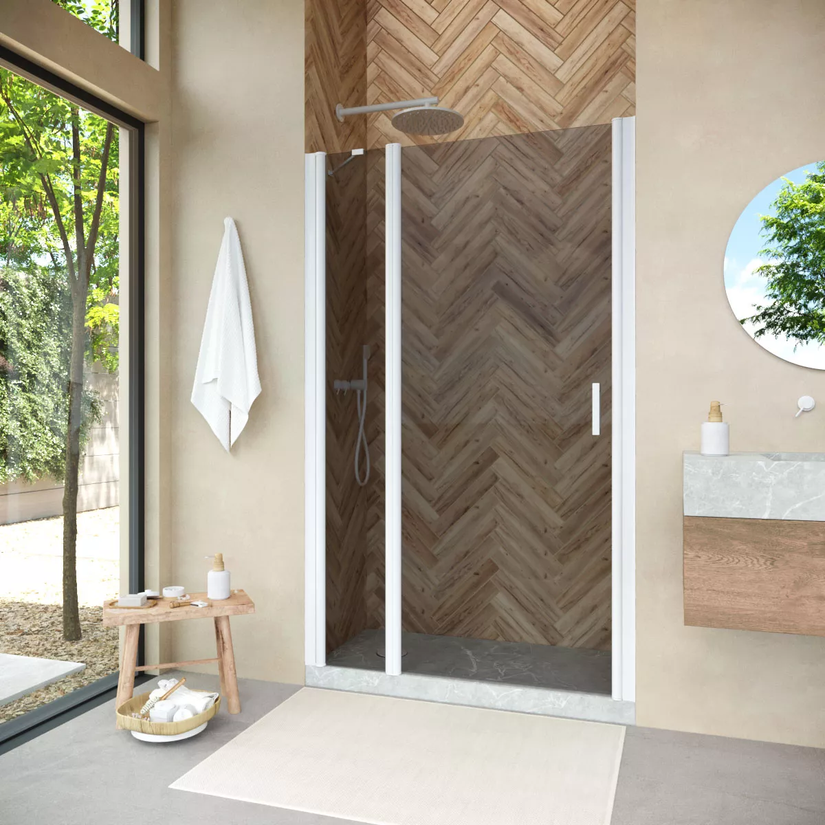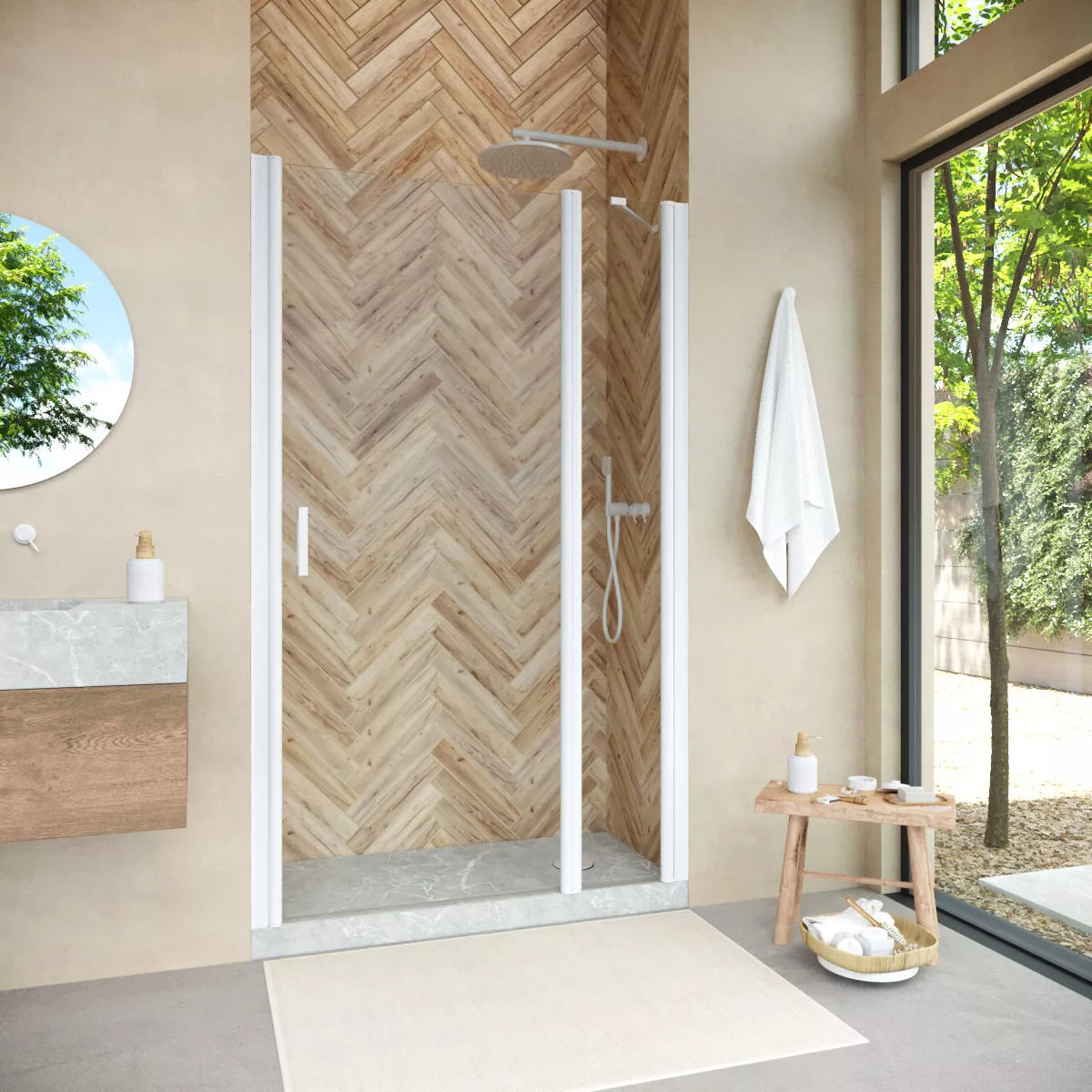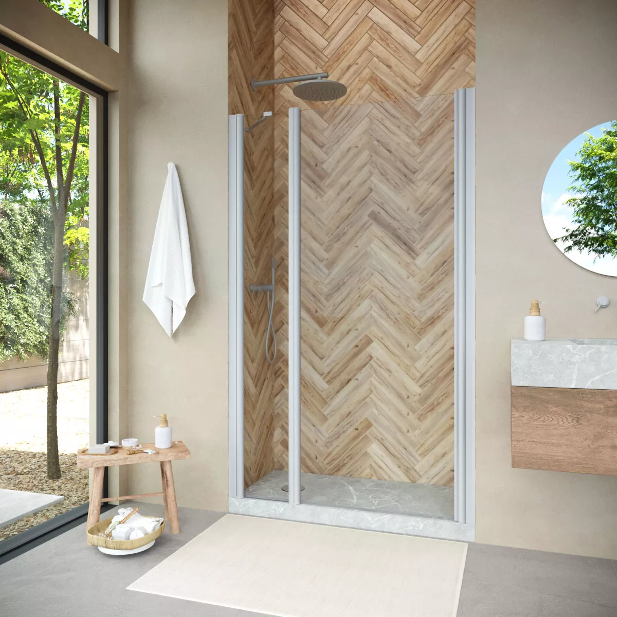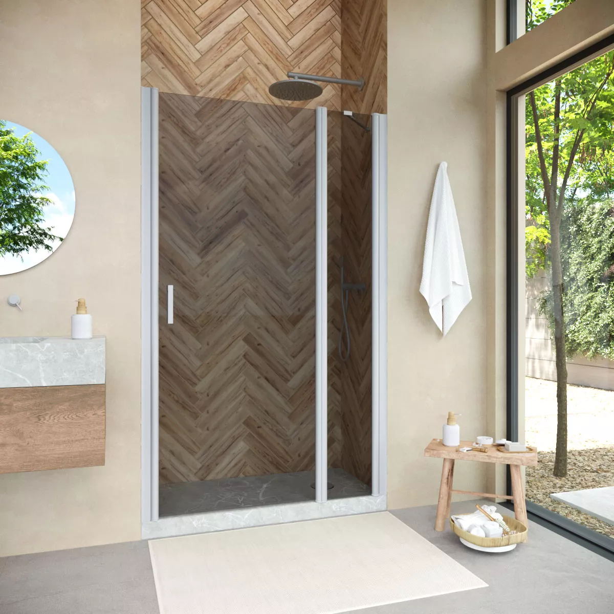 Конструкция двери Vegas-Glass EP-F-1 NOVO обеспечивает удобный доступ к душевому пространству и способствует оптимальному использованию площади ванной комнаты. Распашная система не только удобна в использовании, но и подчеркивает изящество общего дизайна.