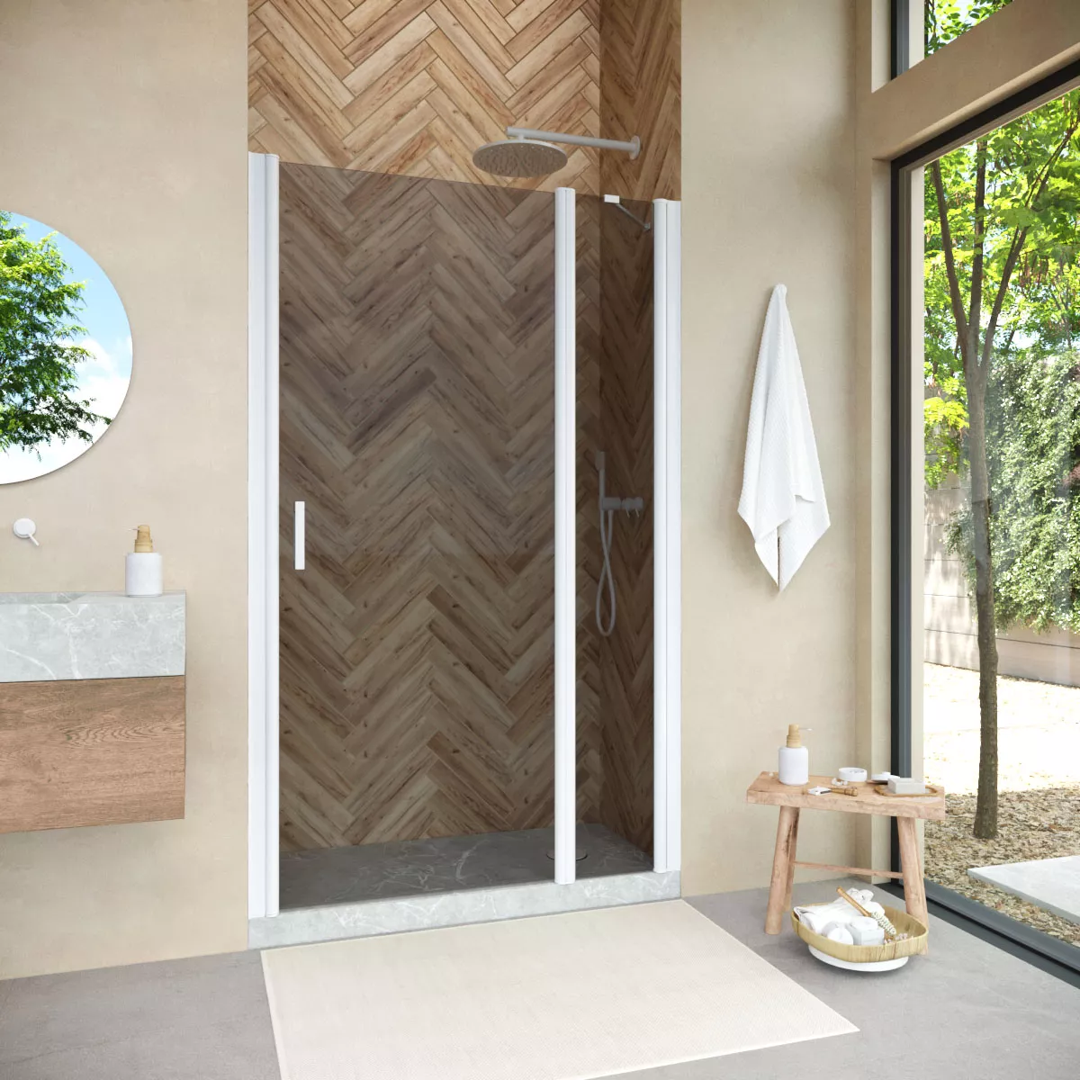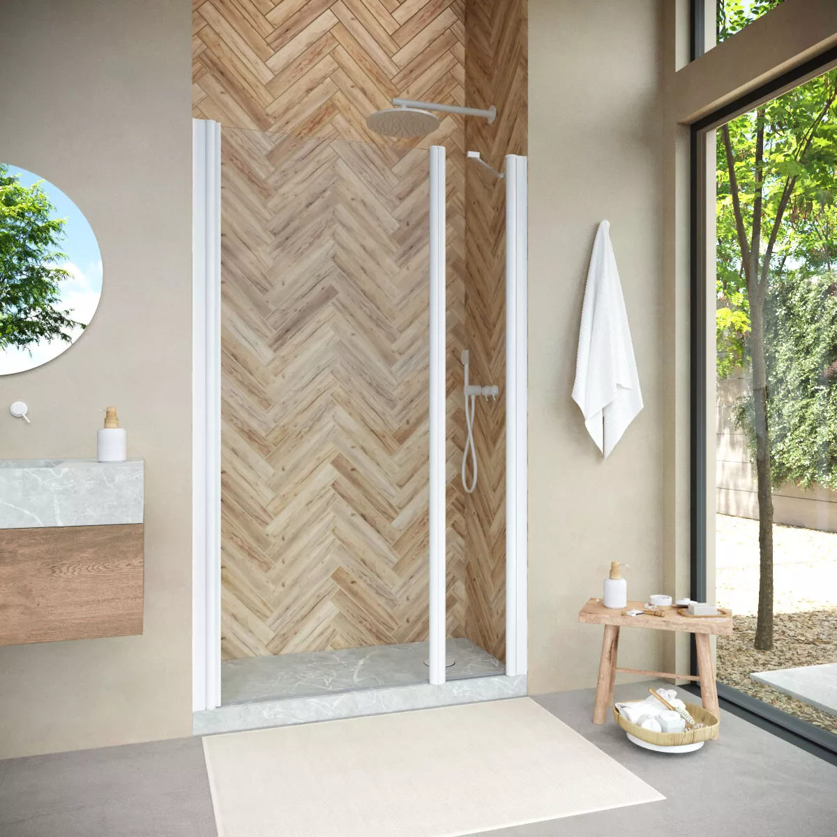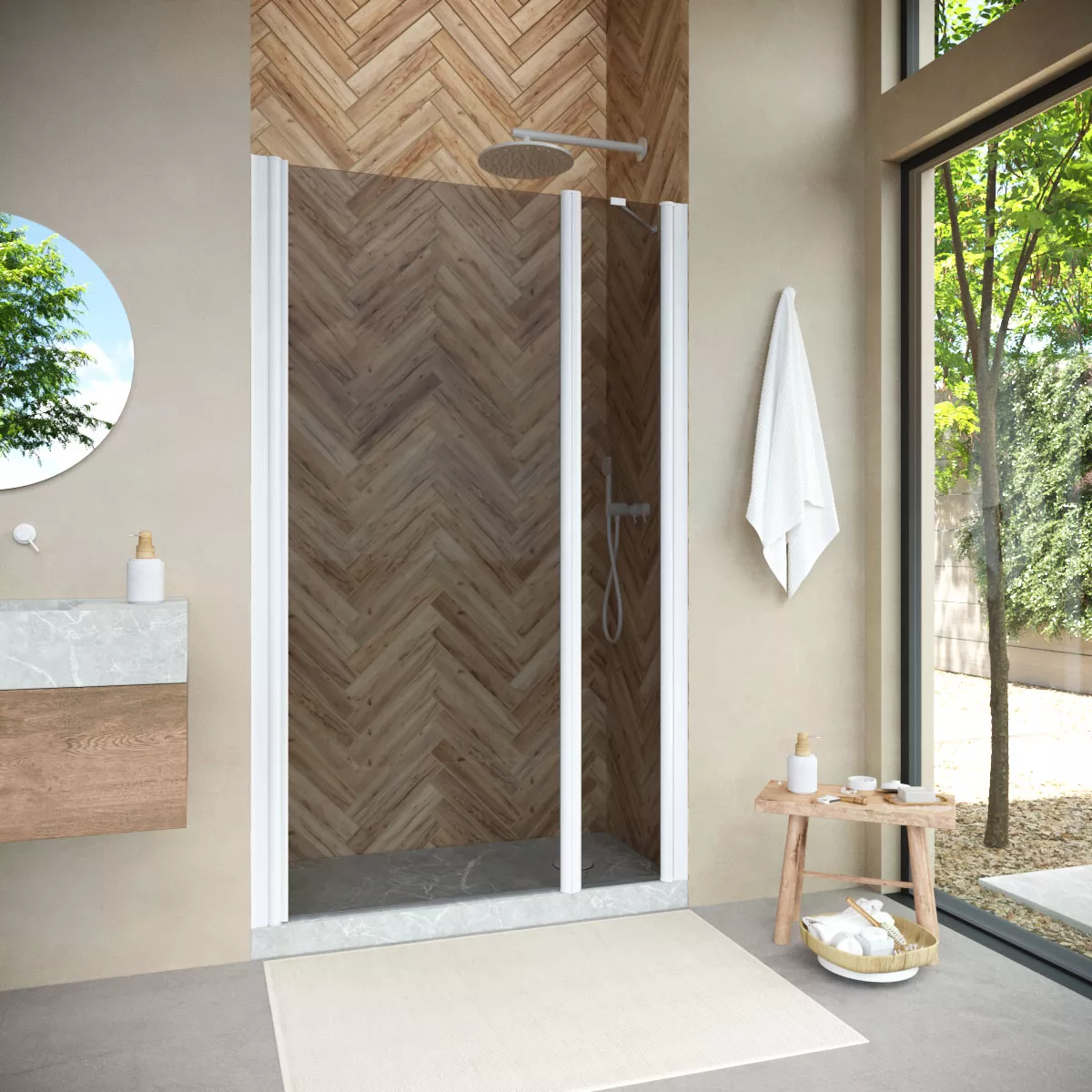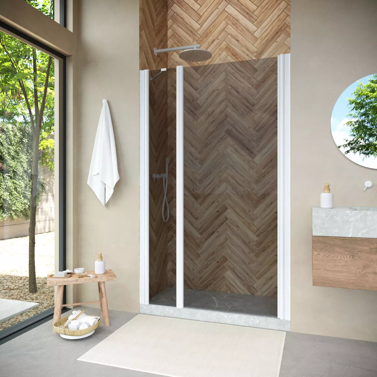 Конструкция двери Vegas-Glass EP-F-1 NOVO обеспечивает удобный доступ к душевому пространству и способствует оптимальному использованию площади ванной комнаты. Распашная система не только удобна в использовании, но и подчеркивает изящество общего дизайна.