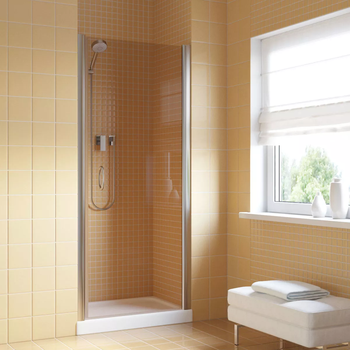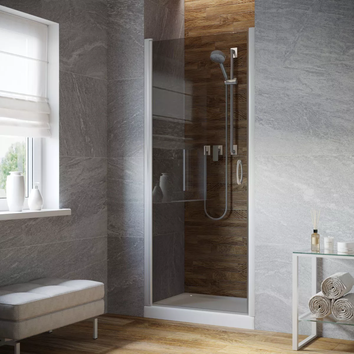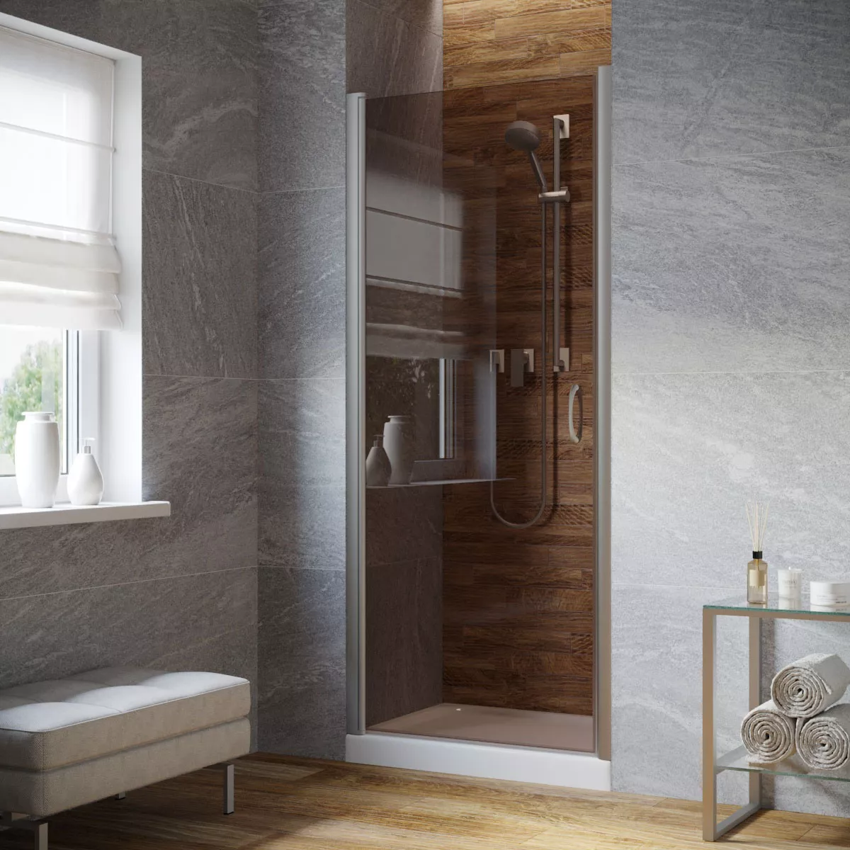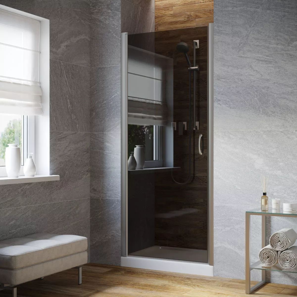 Установка и размеры: Дверь предназначена для установки в нишу, с возможностью регулировки размеров для идеального соответствия нишевому пространству. Размеры двери могут варьироваться, предлагая решения для различных размеров ванных комнат.