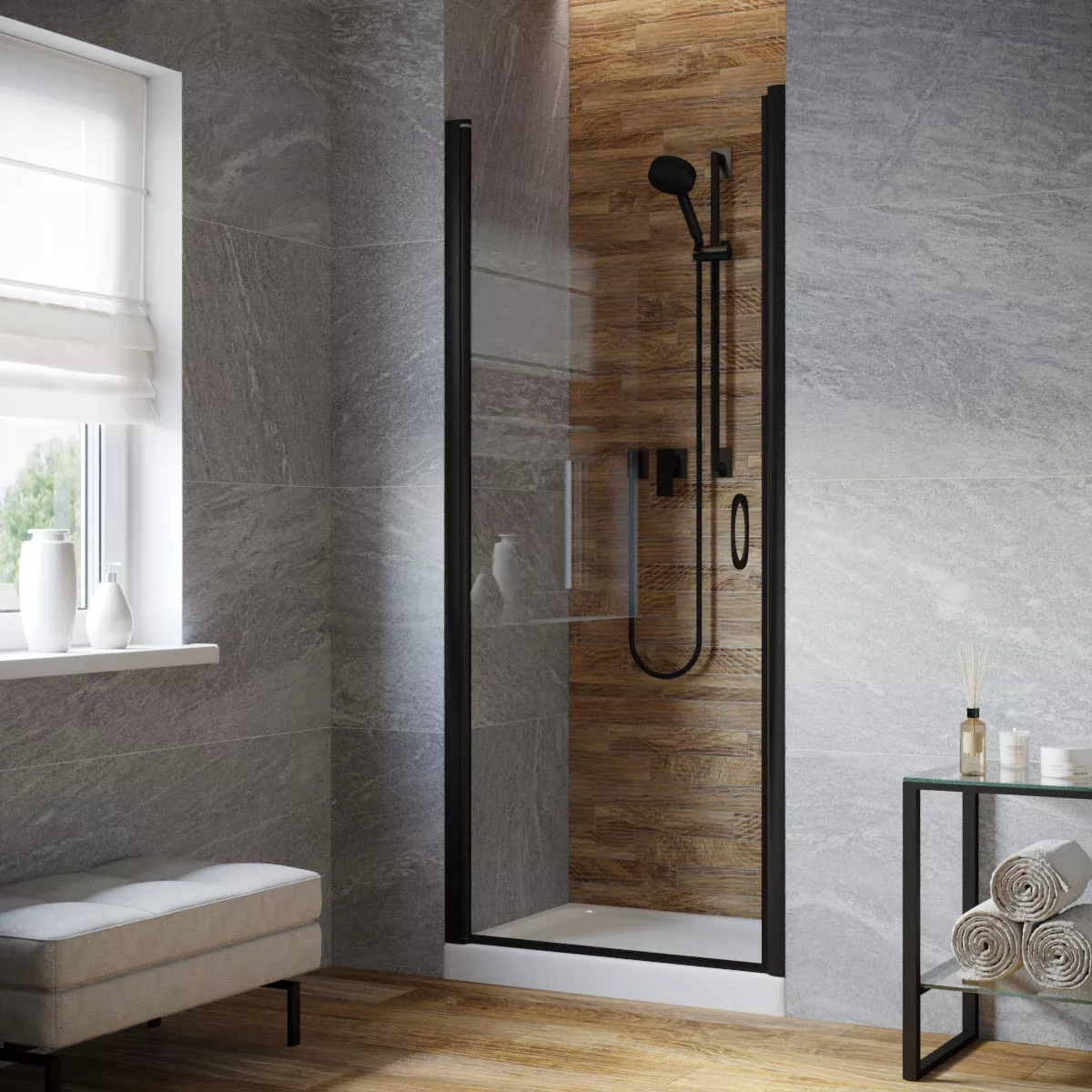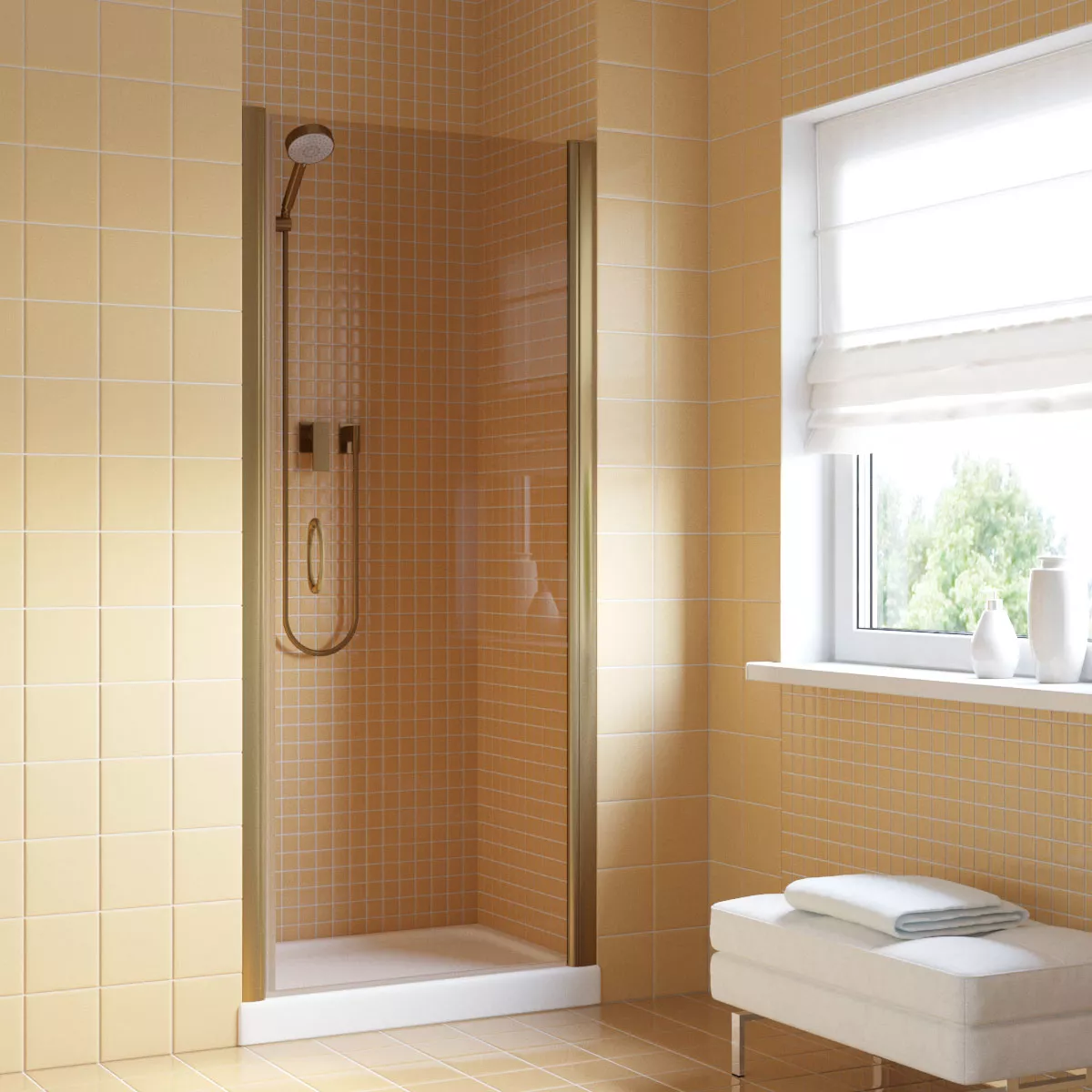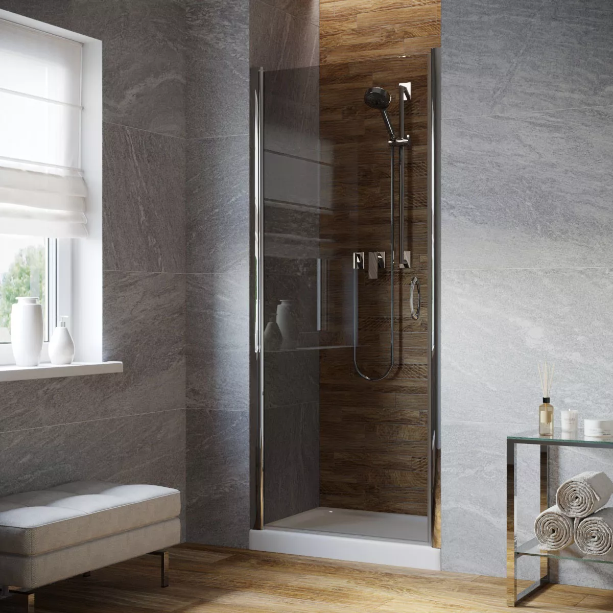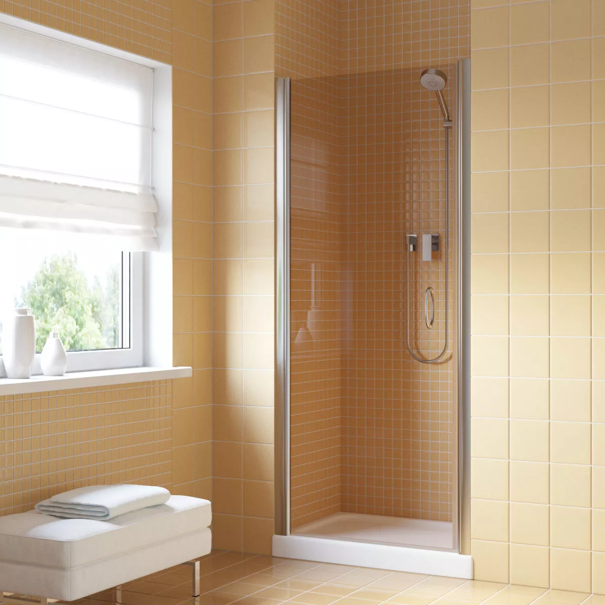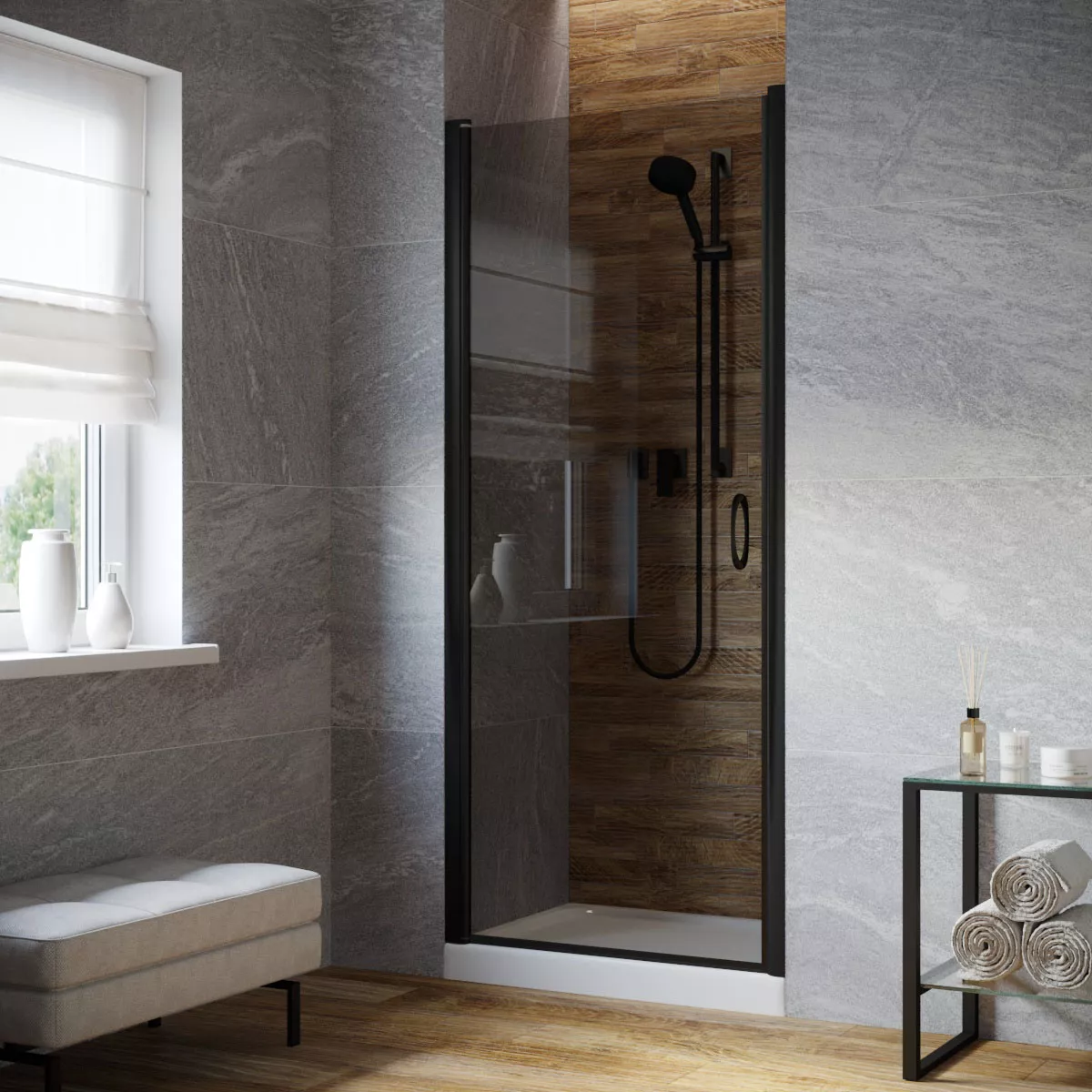 Установка и размеры: Дверь предназначена для установки в нишу, с возможностью регулировки размеров для идеального соответствия нишевому пространству. Размеры двери могут варьироваться, предлагая решения для различных размеров ванных комнат.