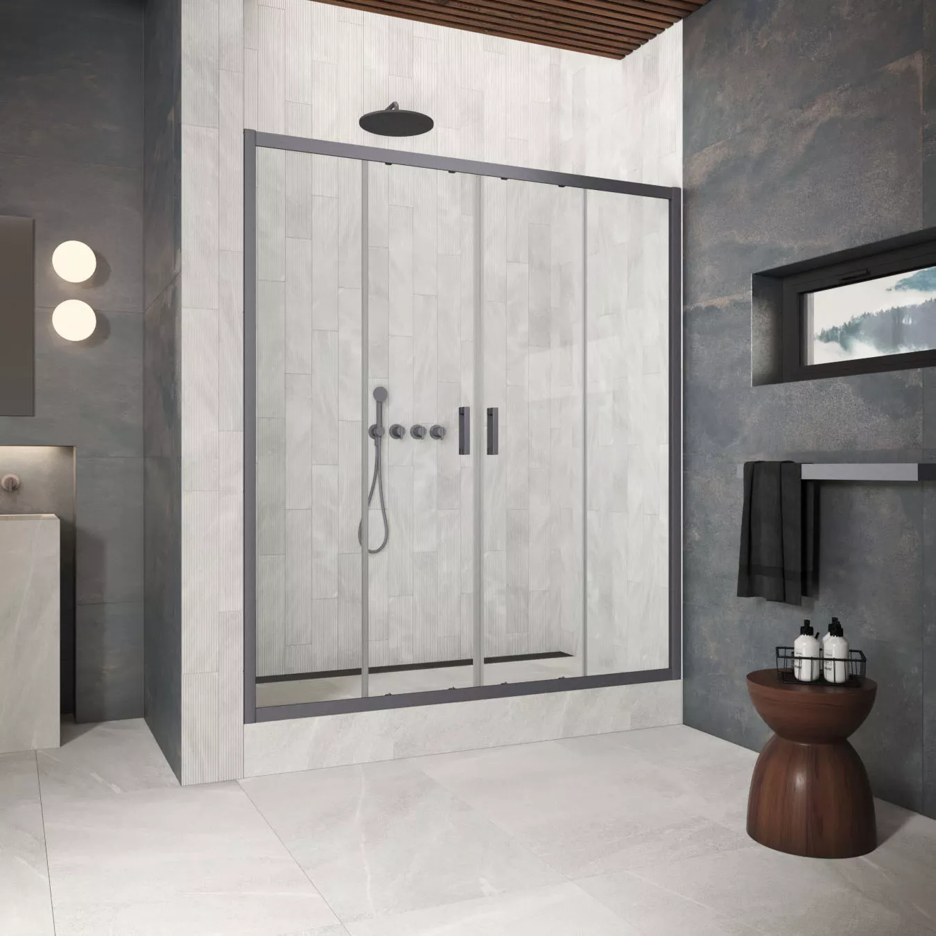 Угловые ограждения с раздвижными дверями