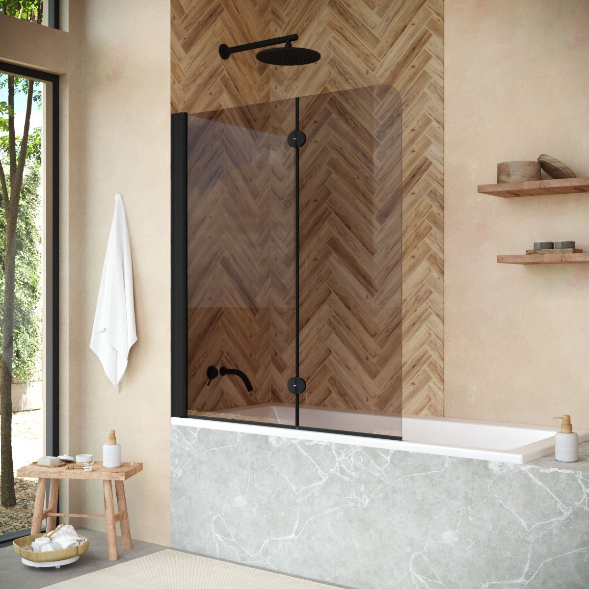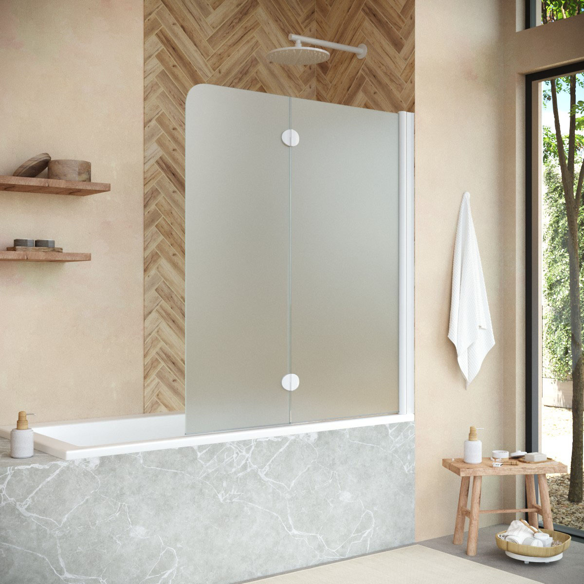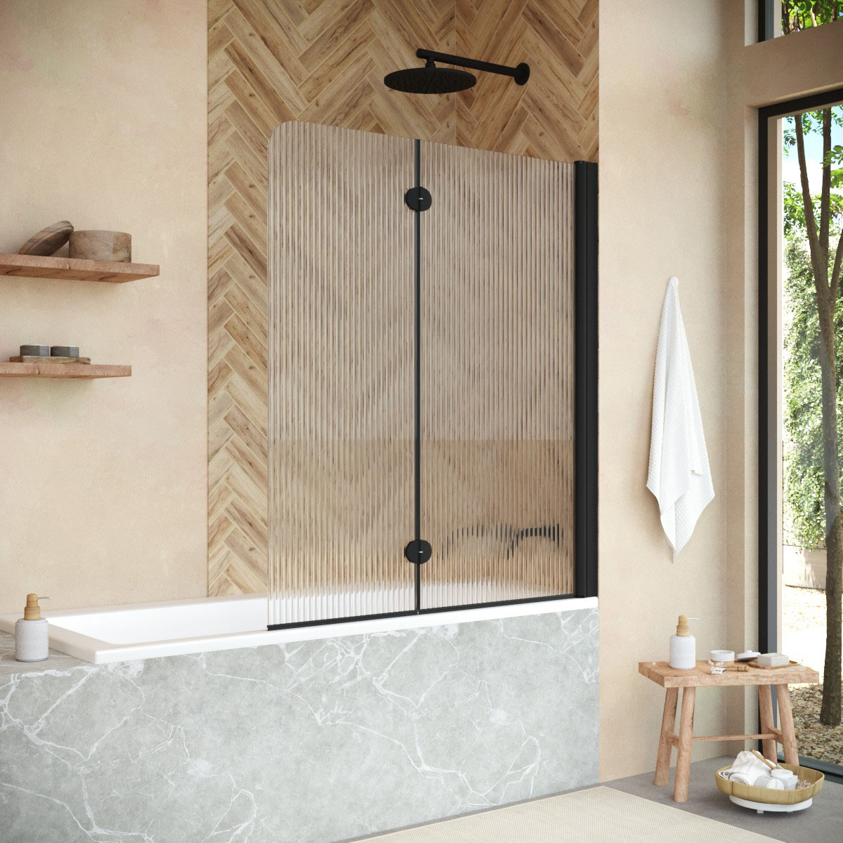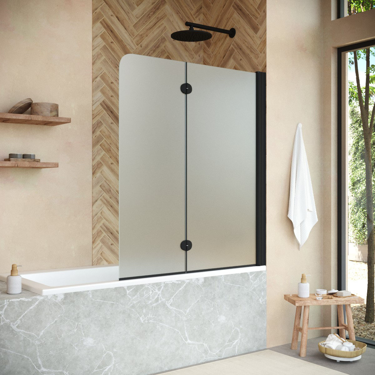 Стеклянная шторка Vegas-Glass E2V NOVO может быть выполнена в различных вариантах стекла. Это позволяет легко адаптировать продукт к индивидуальному стилю ванной комнаты и создать необходимый уровень приватности.