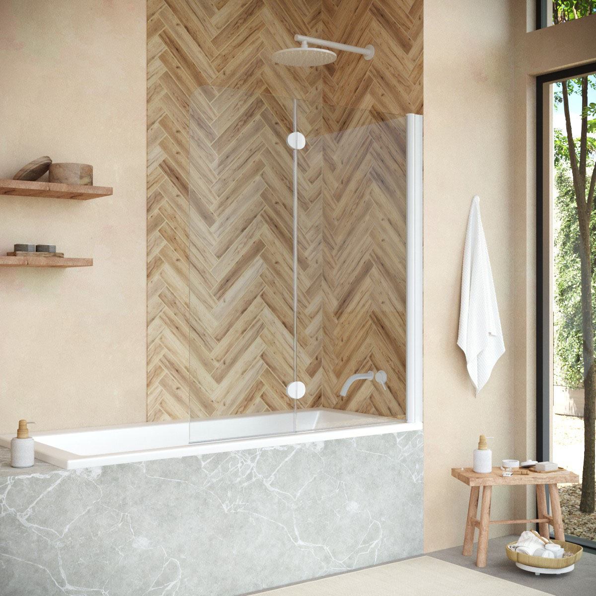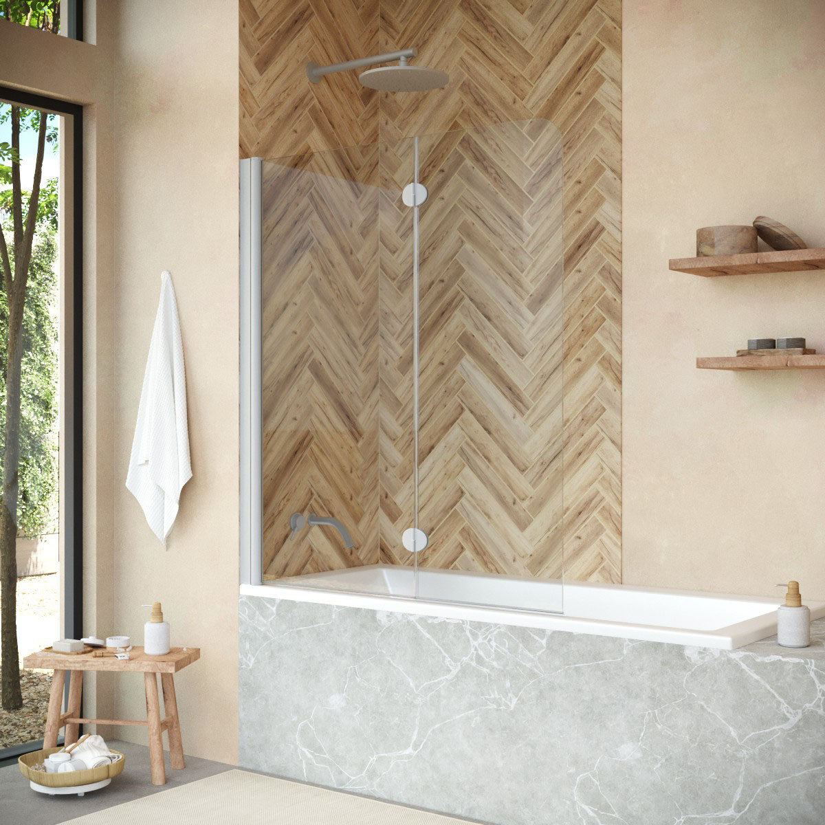 Шторка изготовлена из прочного закаленного стекла, обеспечивающего безопасность и долговечность. Закаленное стекло, толщиной в 6 мм, устойчиво к ударам и температурным изменениям, что особенно важно во влажной среде ванных комнат. Кроме того, такой тип стекла обеспечивает чистоту и легкость в уходе.