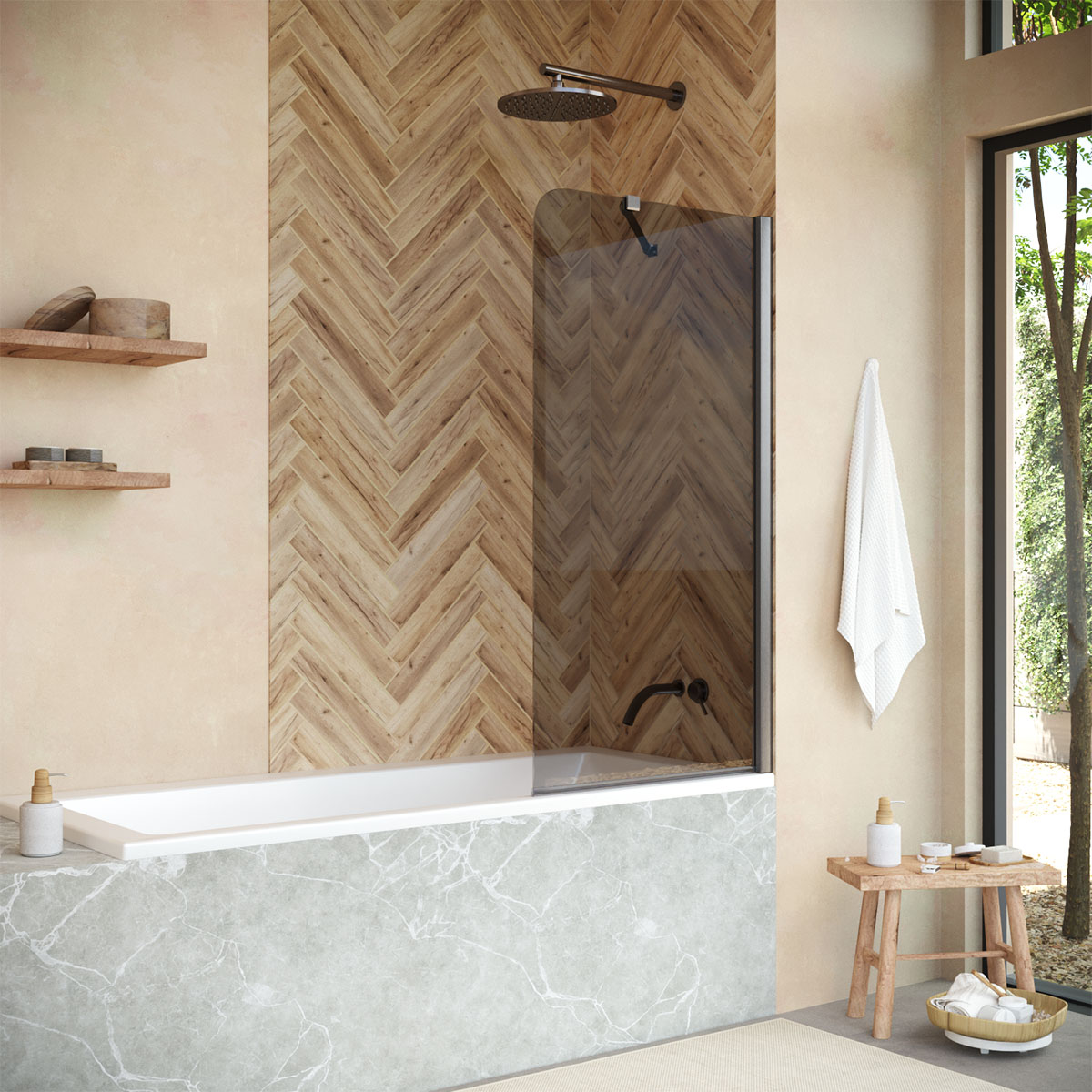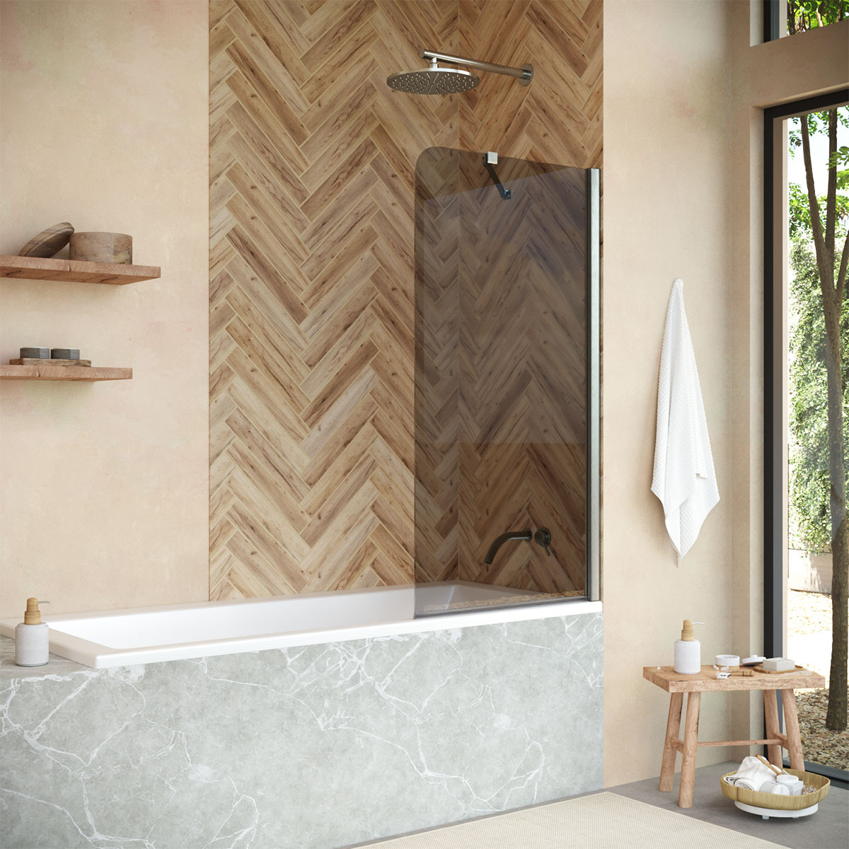 Шторка изготовлена из закаленного стекла, которое устойчиво к ударам, царапинам и перепадам температур. Это инвестиция в долгие годы комфорта.