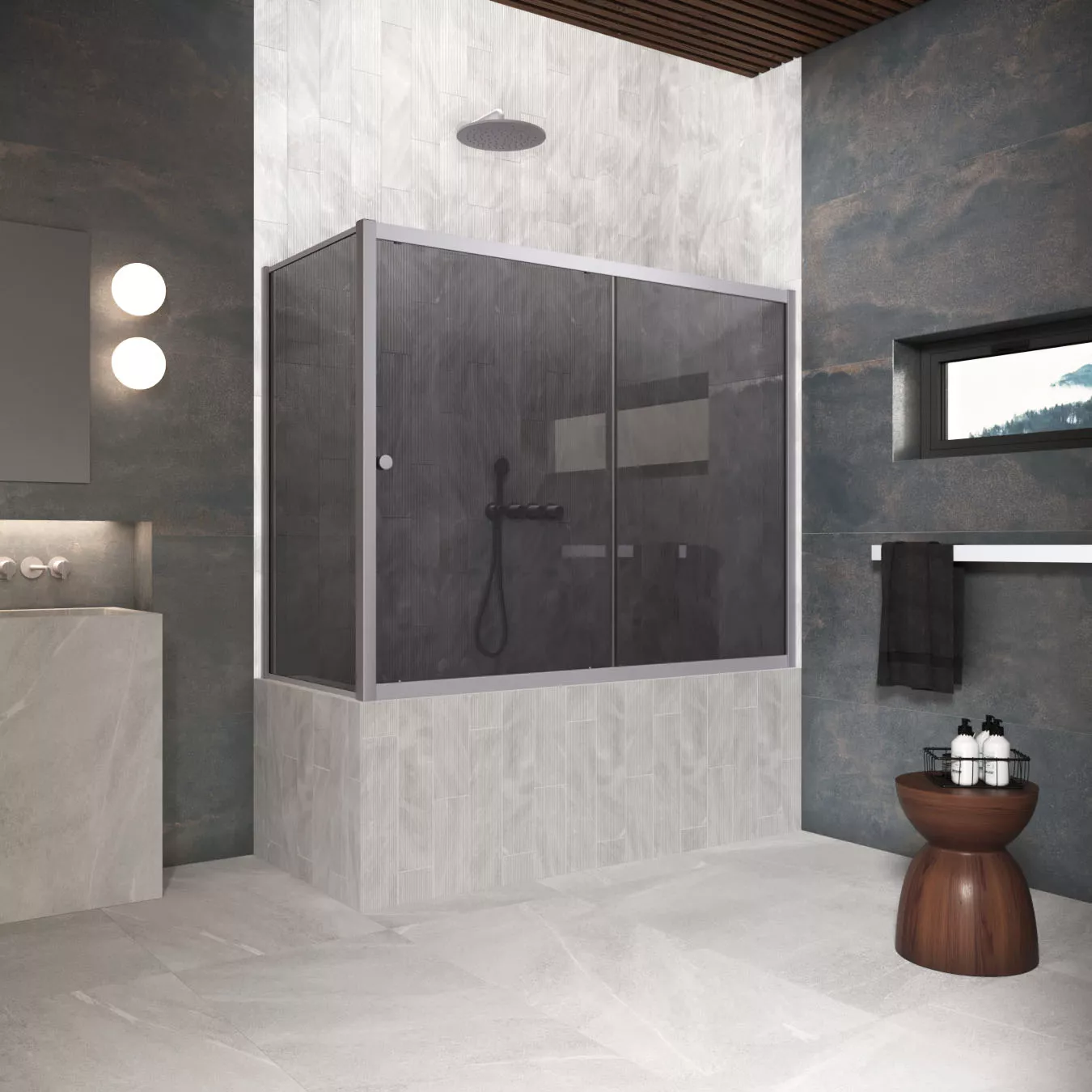Угловые ограждения с раздвижными дверями