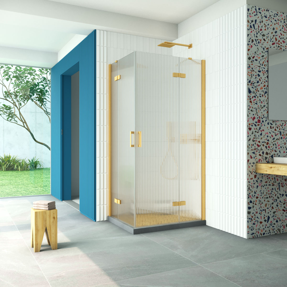 Угловые ограждения с раздвижными дверями